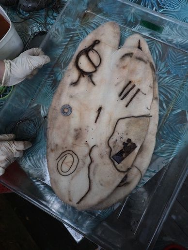 Bowl green red purple is 'Tribute to Calton- Ware' 9 x 25 x 25 cm